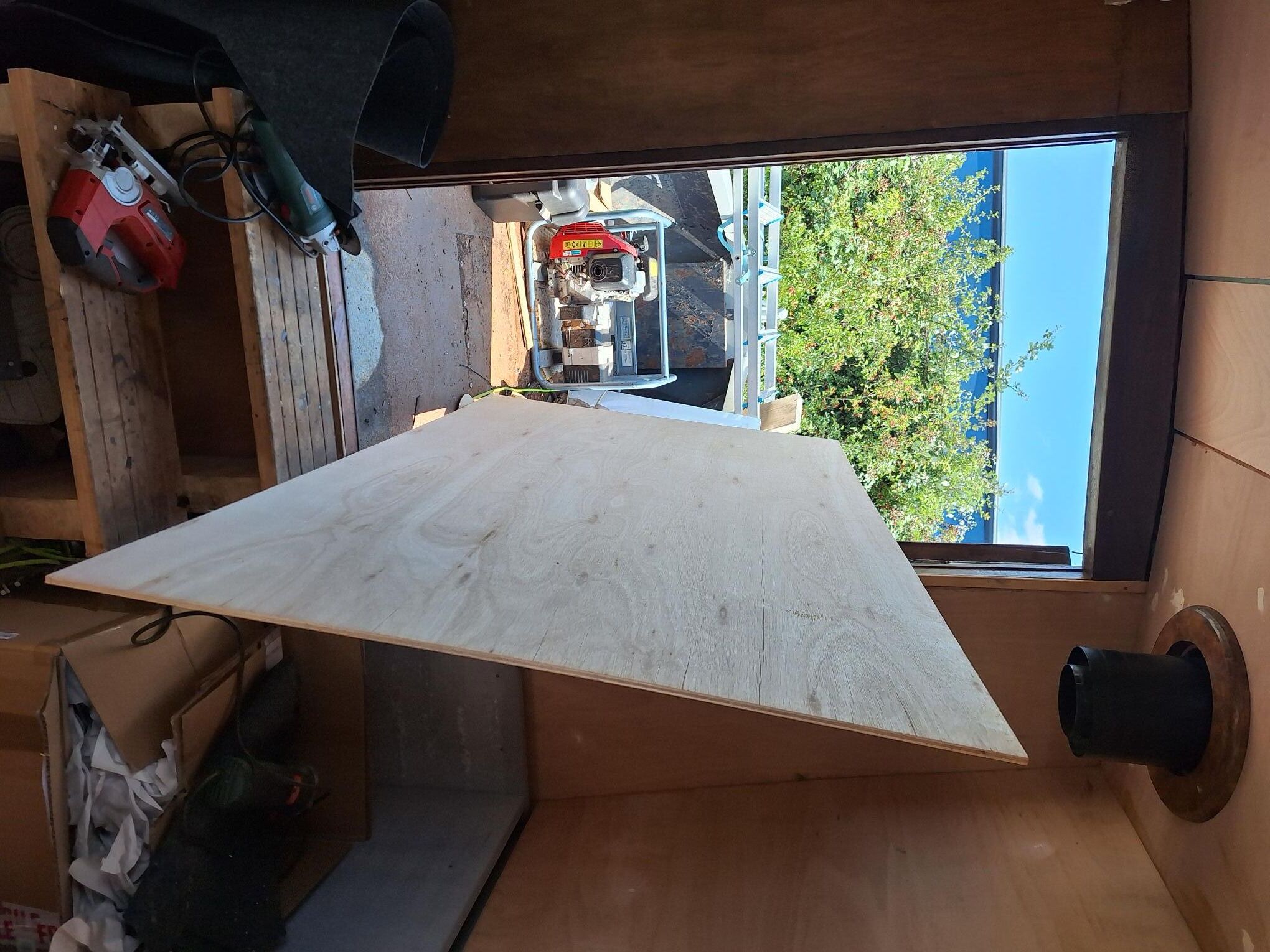 With the drought continuing and CaRT closing canals and rivers left and right, I thought, "what does my boat really need right now? I know, it really needs a brolly holder, so I don't get wet steering in the incessant rain we aren't getting." Similar to the commercial ones, but uses the tiller pin to hold the brolly vertical. 40mm waste pipe, which fits nicely over my brass tiller extension. A solvent weld T, which needed relieving a little inside with a 38mm holesaw to fit over the tiller. Posed with a too small brolly. I will need to get a taller one so I am not crouching. The new brolly I'll be shopping for will need a smaller diameter handle to fit in another length of 40mm waste pipe to be welded in to the T. Not quite there yet, but encouraging progress. Looks neat too.1 point