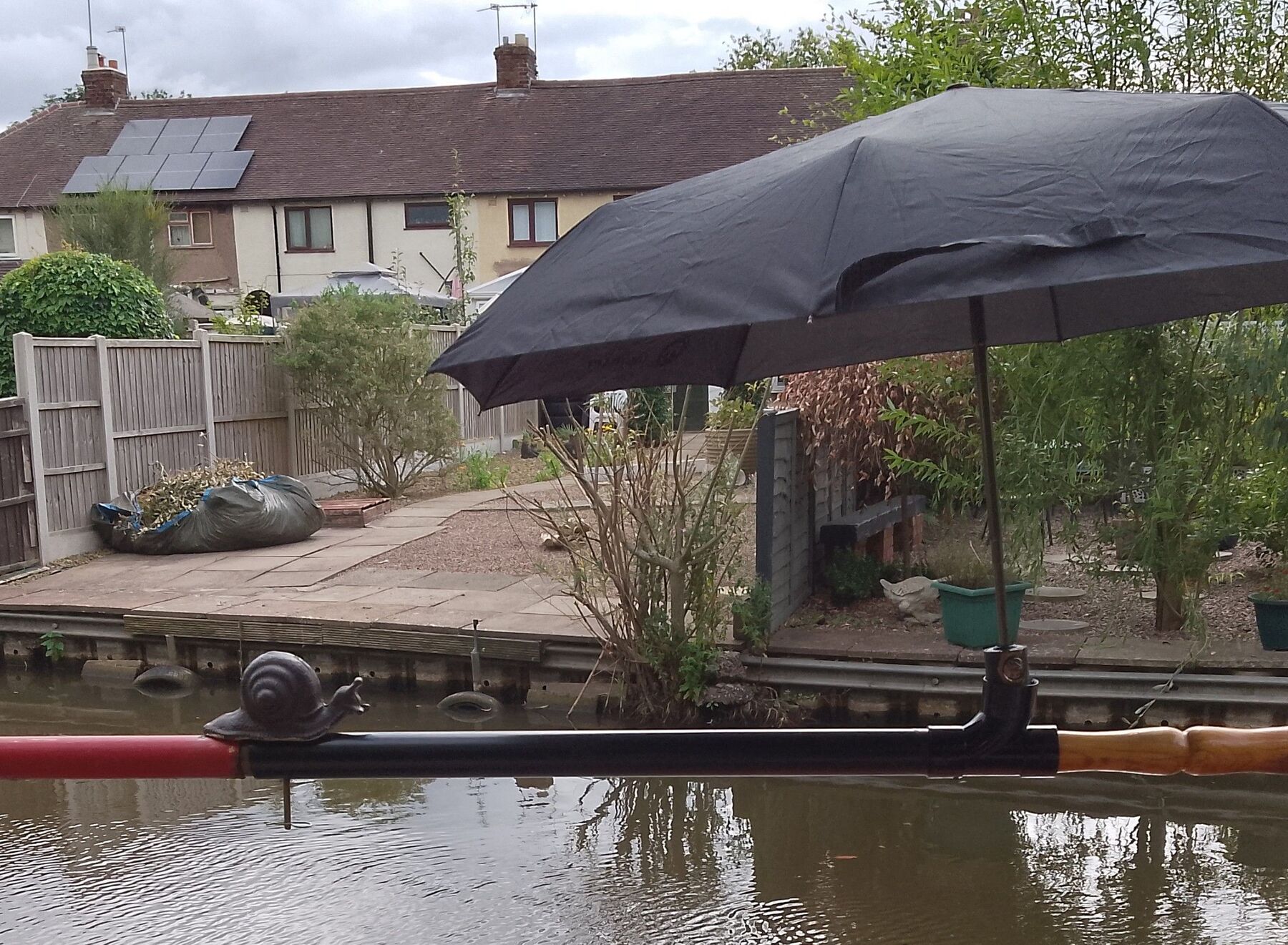 This week I moored by Rugby golf course and saw the crest of an umbrella peeping above an accommodation bridge that goes nowhere. I couldn't resist a quick nosey and I saw some enterprising person had erected the golf umbrella above their tent, presumably to create a little artificial shade to minimise morning discomfort in this hot spell.1 point