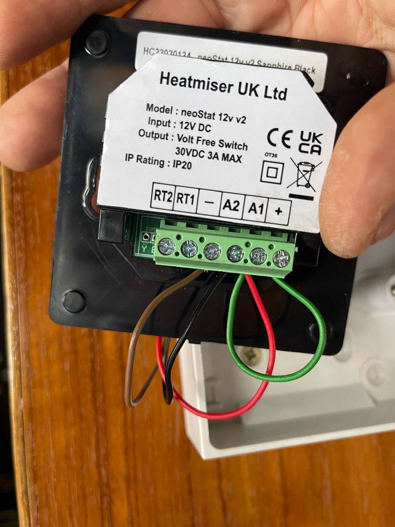 Hi all, Freshly installed a Webasto which actually came with a start/stop push button. Trying to connect a Heatmiser thermostat but the heater doesn’t start. my wiring is as follow: brown is - return permanent live (thermostat) black A2 is - return switch to heater (relay) red A1 is + feed switch to heater (relay) green is + permanent live (thermostat) the thermostat works, lit and programmable, all controls are working but not switching on or off the heater. It seems that the connectors A1/A2 are simply not switching on/off when shorting the red to black, the heater starts immediately. any ideas about this issue? May the relay be faulty? Or I connect something the wrong way around? Thanks in advance 👍🏻 -