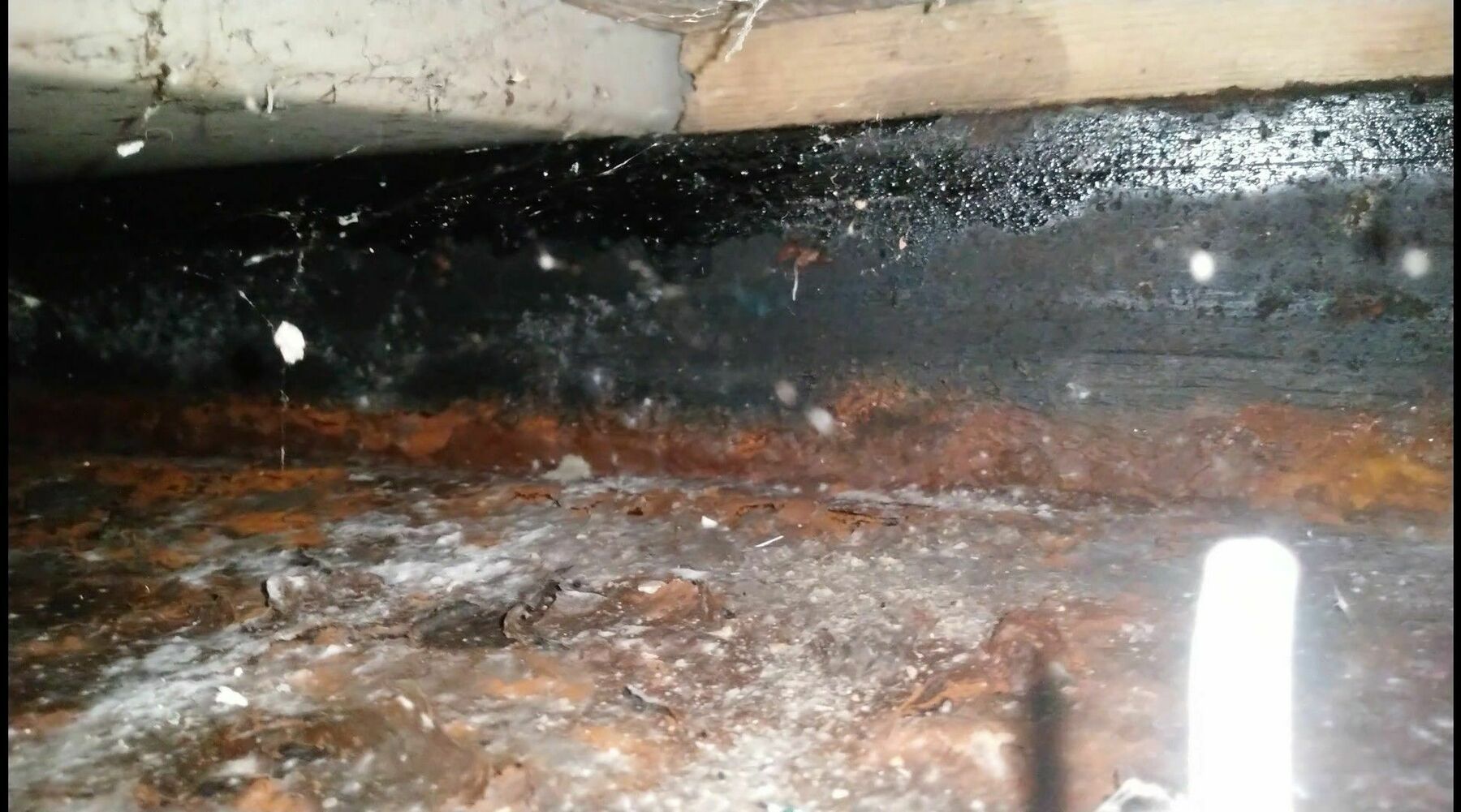 Hello Canalworld! Firstly, thank you so much for the wealth of knowledge and advice that I've received from you all over the past couple years, and all without ever having had to make a post. I knew the day would come though. I've owned my 55ft narrowboat built in 1991 for two years now. She was built by R&D, and had a survey on the hull in 2019. The thinnest part of the baseplate that came up with the ultrasound was 8.8mm on what was originally 10mm steel. Myself and my wife have been living on board full time for almost two years now. There's always something to do in terms of maintenance, and I've kept on top of it so far. We love the practical hand on approach to life. Recently, I'd noticed some white mold had been growing on some of the plywood that makes up the under-bed storage, where it is sat near to the black water toilet waste tank. This is a large (I have no idea of the capacity) grey plastic tank that sits under the bed, cut into the wooden floor and extending below the wall and into the bathroom, with a drop through toilet installed. Upon further inspection, I discovered that the ply of the floor had become weak and brittle around the tank, as if it had been exposed to lots of damp and then having dried over the summer. After having ripped some of this weakened wood away, I've discovered just how rusty the floor has become underneath. Large flakes of on average 6mm thick rust can be easily pulled away from the floor all around the tank. I'm aware of this apparently only being 0.6mm of steel lost, or a tenth of the thickness of the rust. How accurate is this however? And would this have been counted as good steel during the ultrasonic survey, or are they pretty accurate in just measuring the solid steel? It appears that there is a thin rubbery coating on top of the rust. I guess this is old treatment/coating that seems to have done more harm than good. The moisture appears to have gotten underneath and even been trapped by it, which has caused the rust to bubble up with the coating still on top. This looked quite dramatic and worrying when it was first revealed. My suspicion is that the black water tank is causing condensation in the winter. The tank is not insulated, and only had a single sheet of thin polystyrene placed, not secured, on top of it. This had began to smell, I assume from the damp and mold, and has now been removed. I am (mentally) prepared to scrape back and treat the area with Vactan, having done a similar job on the rusty welldeck. However, I'm of course worried about putting a hole in the floor. I've heard it from both sides: "It's always at least 10x worse than it looks, so get in there with the scraper and grinder" Vs "I put my finger straight through the floor of my boat and tickled a fish" Essentially, I'm looking to insulate the black water tank, so as to stop further condensation. What would be the best way of doing this? I assume that I'm going to have to move the tank anyway to get to the rust below and treat that. Afterwards, should I wrap it in something? Try to coat the entire thing in spray foam? What about the bottom? Fill the gap between the floor and the tank with foam? I have a big pot of Vactan, but what else should I put down on top of that, if anything? And ultimately, would I be wise to wait until I can have her pulled out of the water and then scrape back all the rust, or will I be safe to go for it whilst she's still floating? I've been hoping to apply fresh blacking early next summer, but I don't want to have to wait until then to fix the problem, especially going through another winter of condensation building up. I also don't want to leave it to get worse for any longer than I have too, but I'm also not made or money (otherwise I'd be in dry dock already). And in the worst case, any recommended dry docks between Tring and Northampton? I shall attempt to upload some small videos that I have of the problem and be back to update. Here's a screenshot showing underneath the tank. The grey at the top left is the tank, which is sat on the steel girder that runs across the floor (do these have a name?). You can seen the moisture on there. This photo does not show the full extent of the rust. Thank you for reading my life story. Edit: I've uploaded three short videos showing what it looks like under the floor and the tank. https://streamable.com/82wcmo https://streamable.com/5lx2dx https://streamable.com/lz5kip