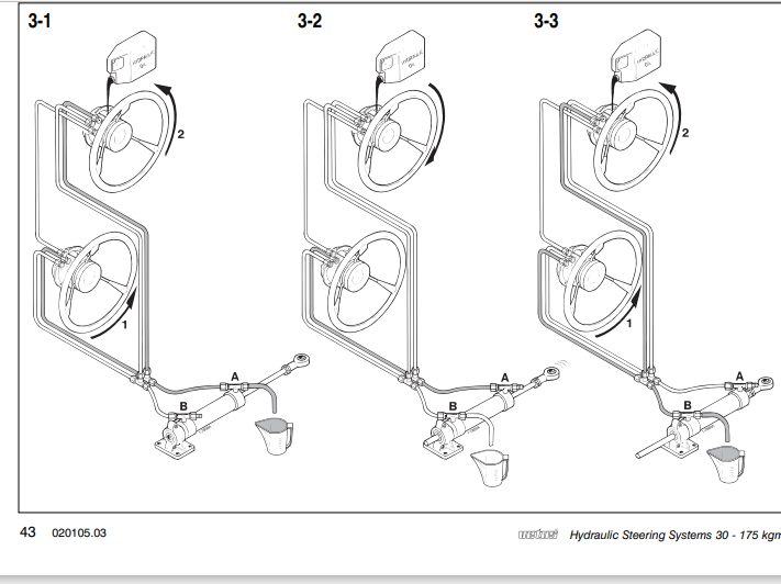 Alan de Enfield Posted October 4, 2021 Report Posted October 4, 2021 (edited) I have a similar situation with a helm in the saloon and a helm on the flybridge, unlike yours It does not have a pressurised tank, but each 'wheel' has a tank behind it which supplys the oil to the piston. Illustration - you can fill both 'tanks' from the flybridge filler and bleeding out the air on the piston. If it is of any help I can send the full Vetus manual whuch you can maybe use to adapt your system Edited October 4, 2021 by Alan de Enfield