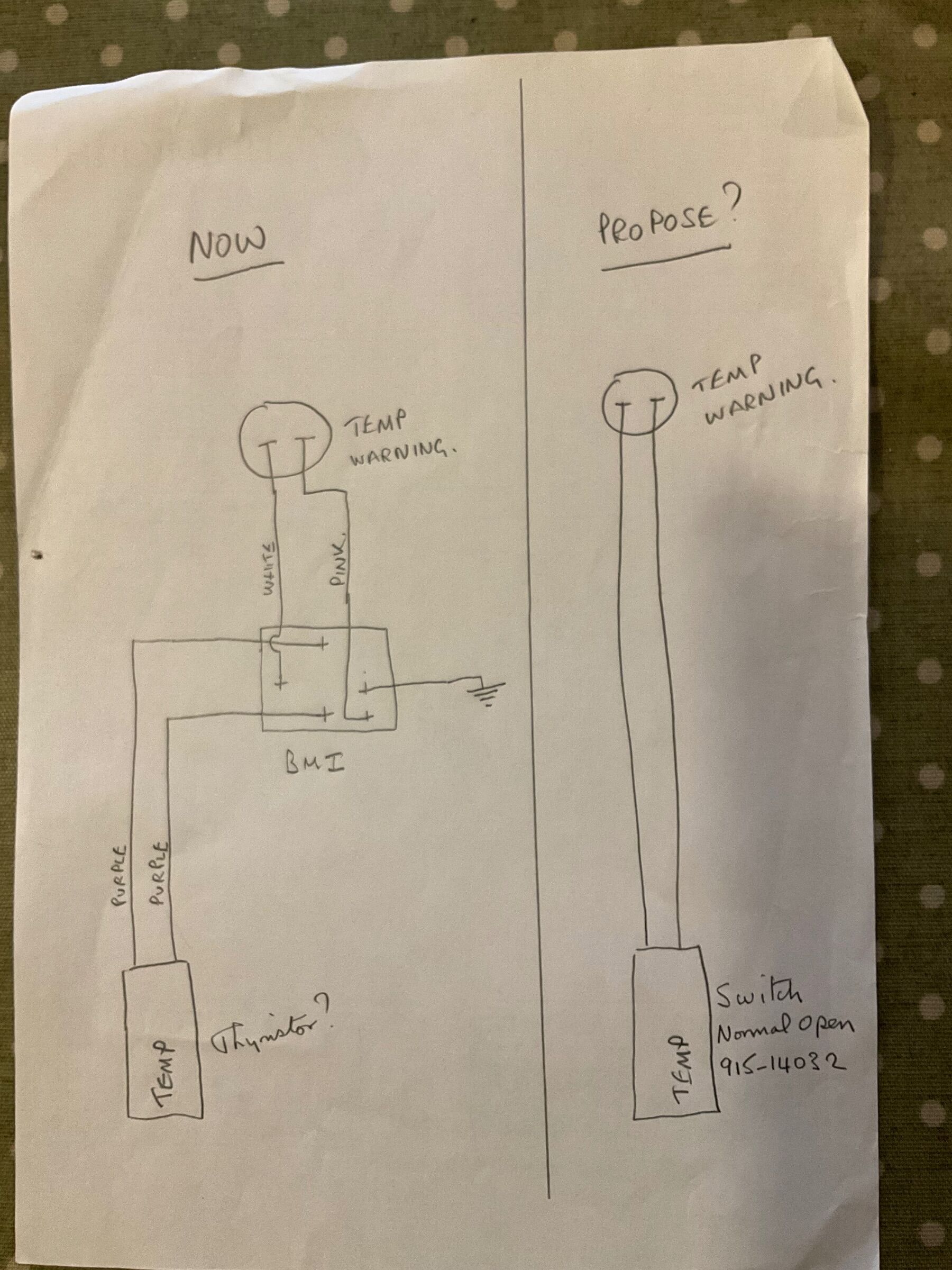 Peugeot 106 Posted November 4 Report Posted November 4 You probably have a thermistor and BMI giving you the alarm. If you PM me with your email address I can forward to you correspondence and instructions from Peter Thompson regarding replacing the thermistor and BMI with a normally open switch (available from Sleeman Hawken) Peter used to refurbish and marinise these engines for Lister Petter Agreed the wires fall off the thermistor easily so check as Jonathan suggests Just found my diagram!