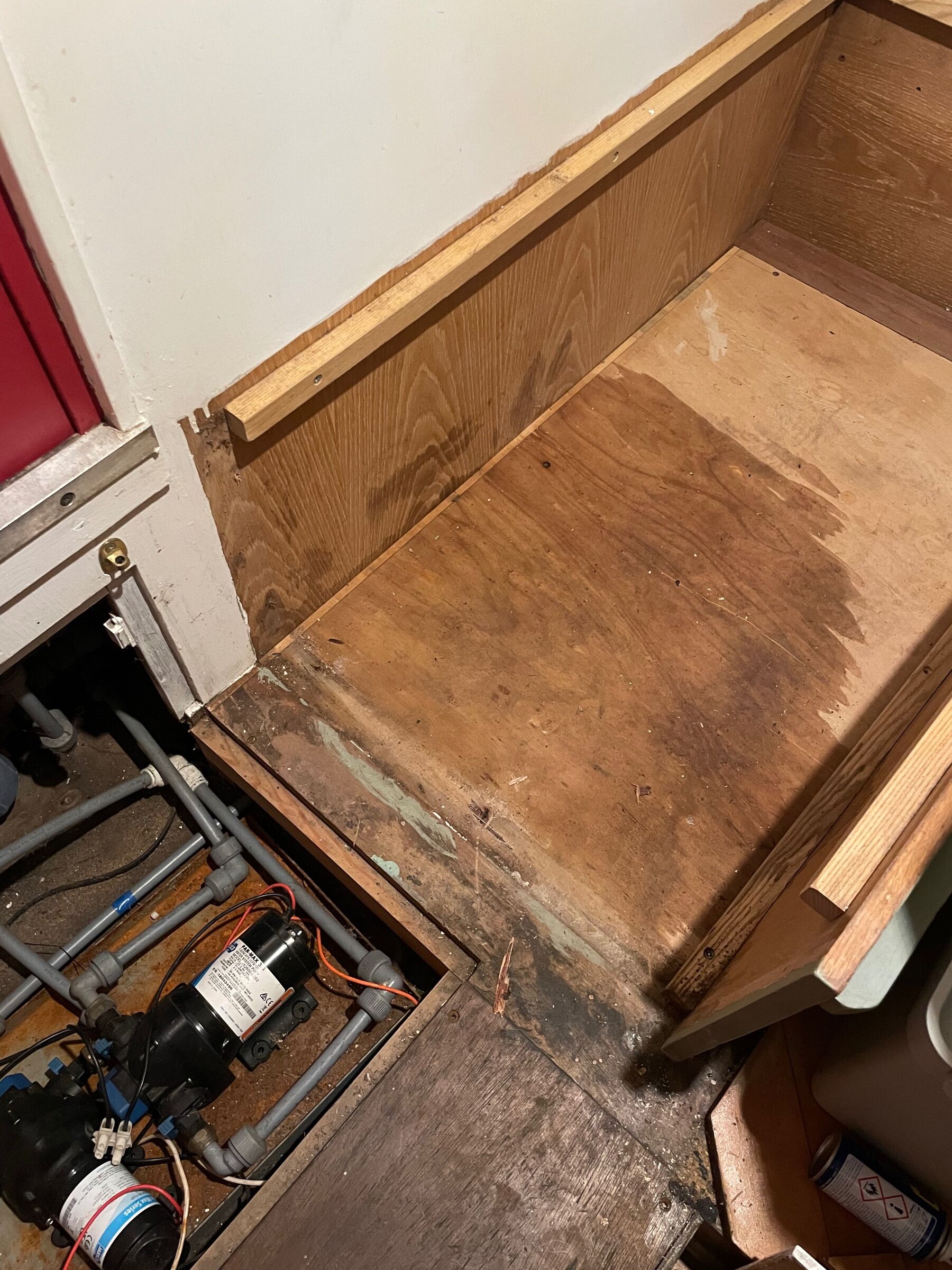 AnnieRose Posted November 16, 2025 Report Posted November 16, 2025 Hello, I’ve just bought my first narrowboat and have discovered this wet patch under the dining seating area, near to the water pump at the bow. I can’t see any obviously leaky pipes, and it appeared to get worse after it rained recently. Really not sure where it could be coming from, if anyone has any ideas of what it could be please let me know! Thanks