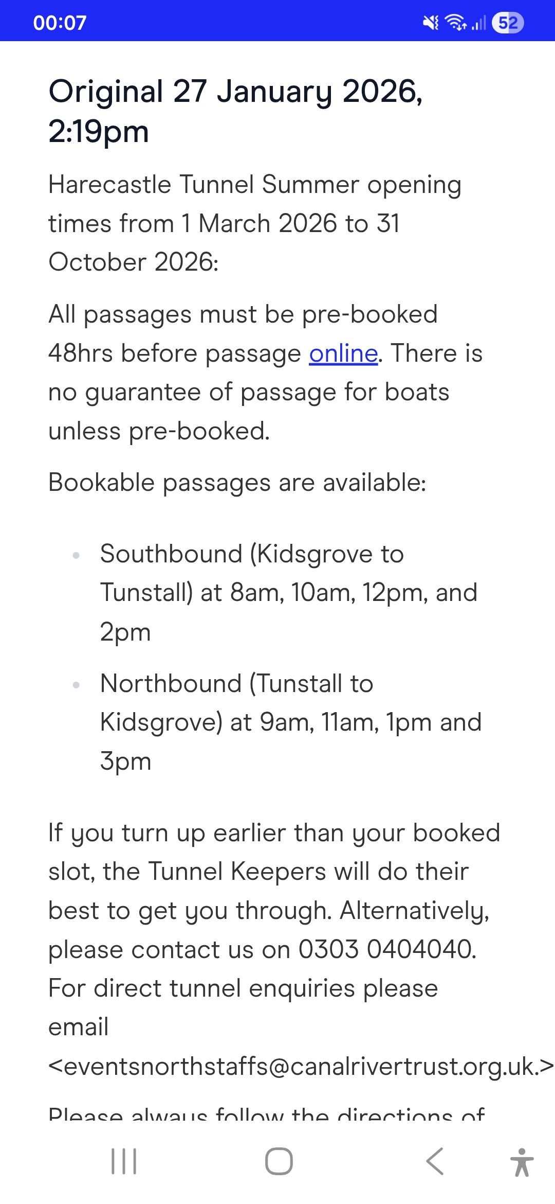 Harecastle tunnel - booking only passages